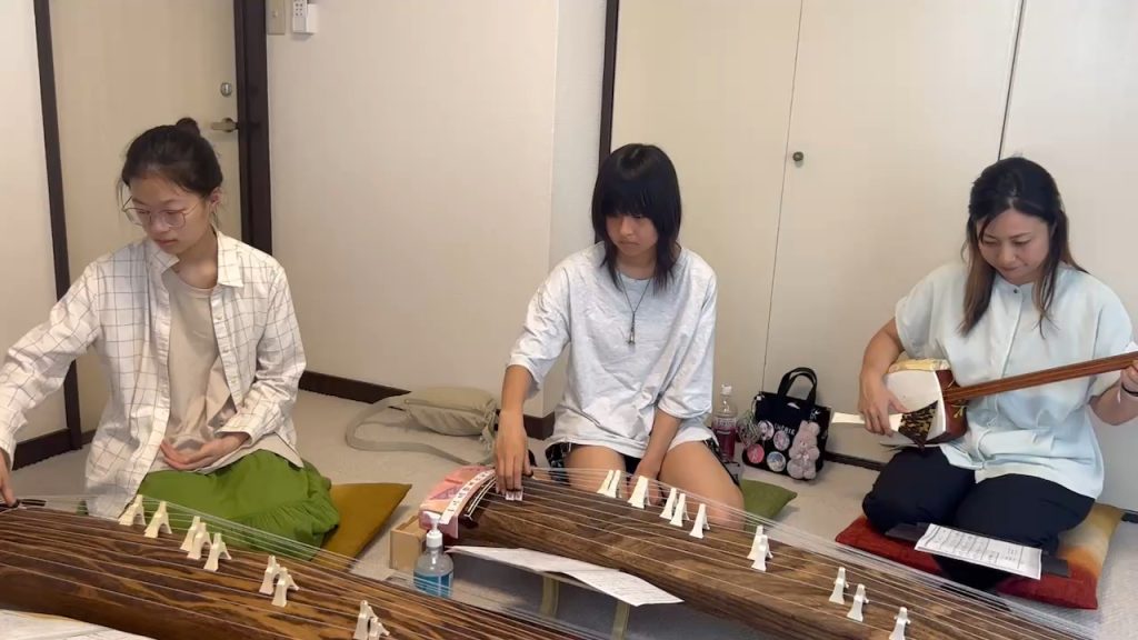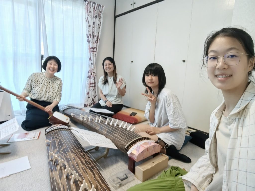 今回は留学生と生徒さんの娘さんも一緒に琴体験です。